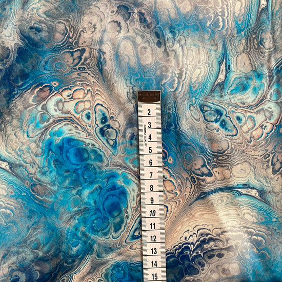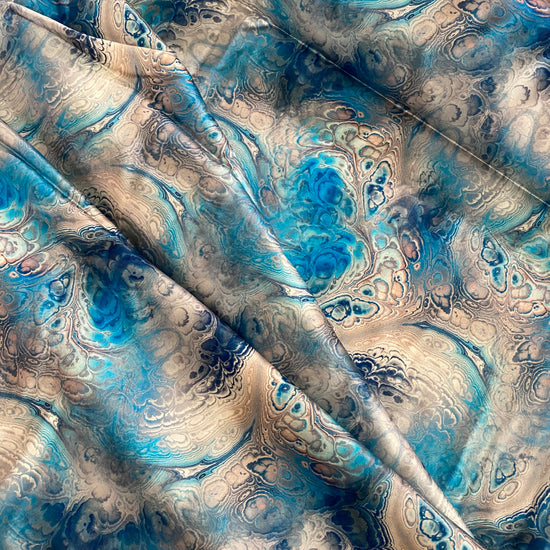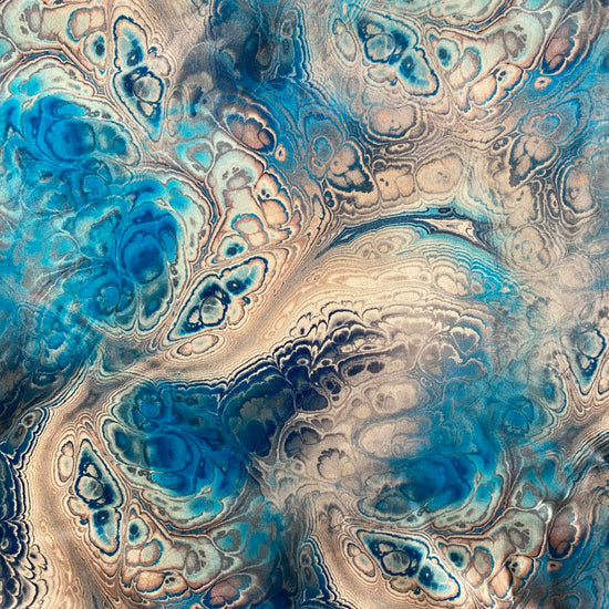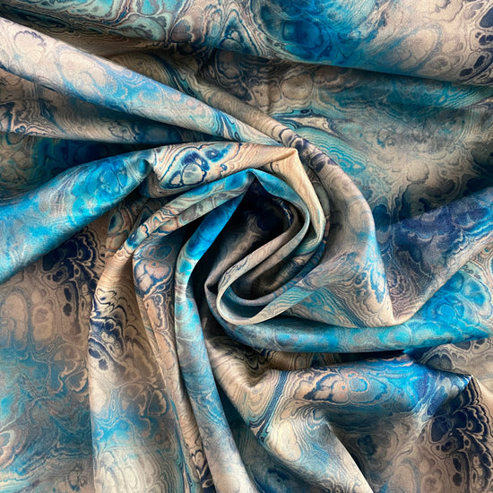 Acrylic Pour Paint Print Stretch Silk Satin - Dodger Blue