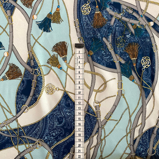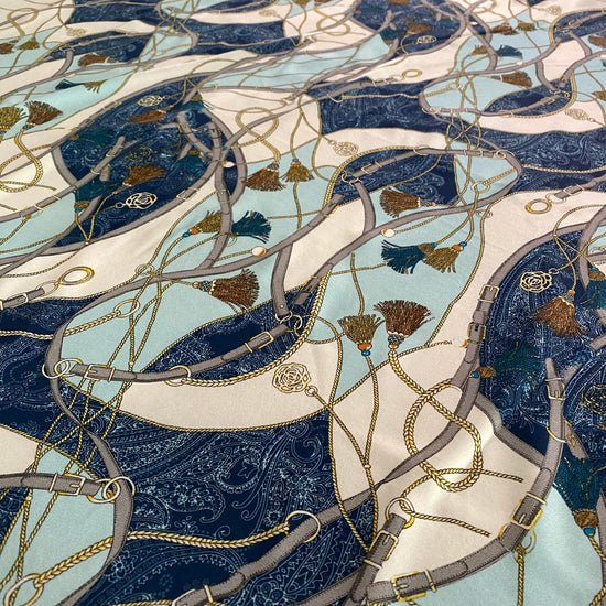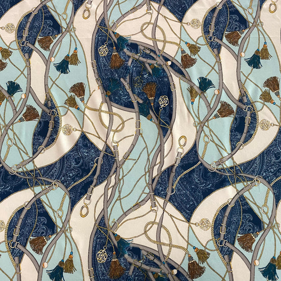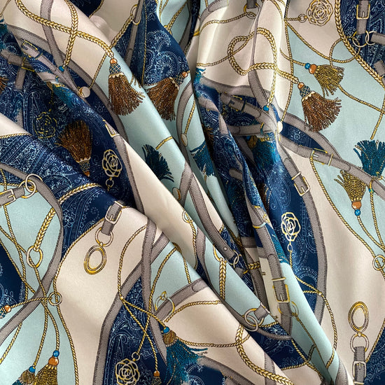 Rope and Belt Stretch Silk Satin - Dark Blue / Powder Blue