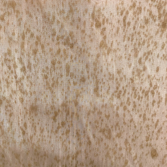 This lightweight fabric has a fine organza structure with a shimmered lustre. Finished with an aged/stained appearance. It has an airy drape, semi-sheer coverage, and no give in either direction.