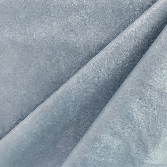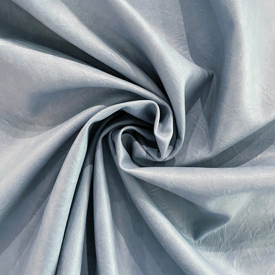 A polyester twill-weave fabric with a PU coating on the technical face with a crushed / wrinkled look. Medium - heavy weight with a voluminous drape and minimal structure, opaque with a soft pigskin-like leather handle, appearance is mostly matte with a slight shimmer, and very slight give in the weft direction with no give in the warp direction.