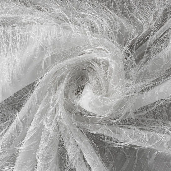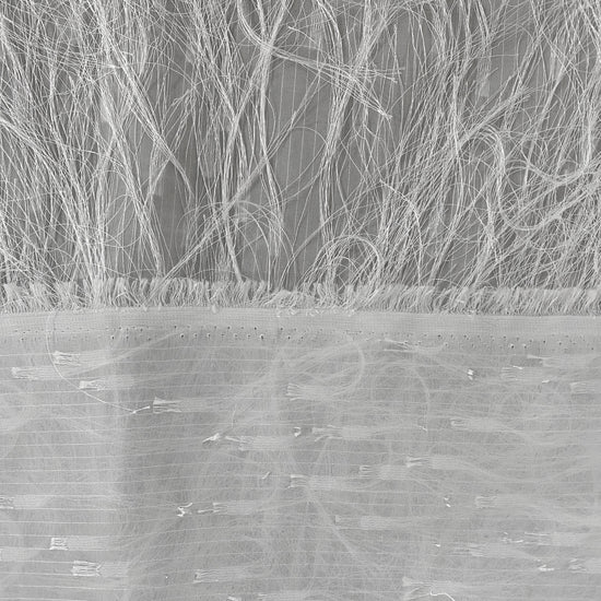 Light weight chiffon with dobby weave long tassels, good drape and a grassy handle and appearance.