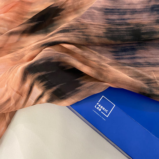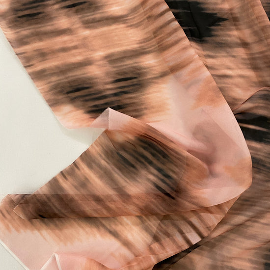Printed Shibori-like Sheer Silk Plain Weave - Light Coral/Black