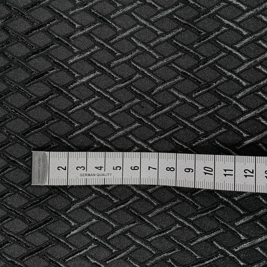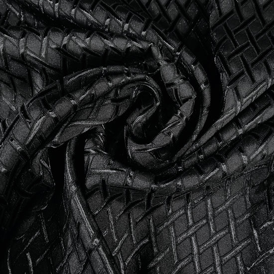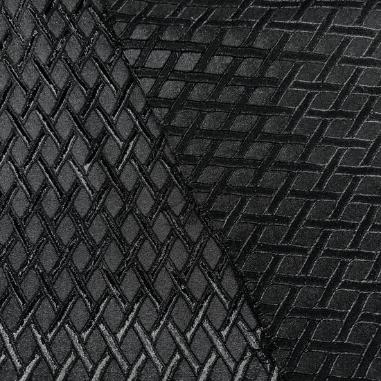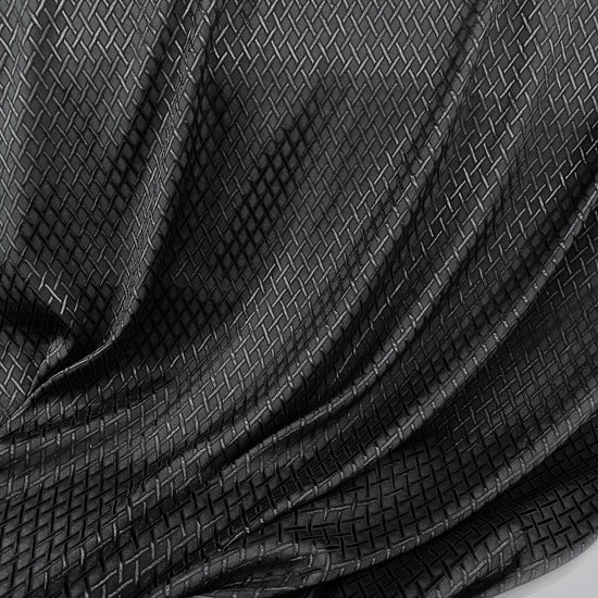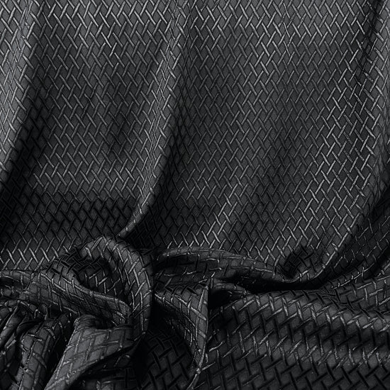 A light to medium weight, opaque, damask Jacquard with diamond hatch motif, great drape, some stretch in the weft direction and a smooth, silky handle and appearance.