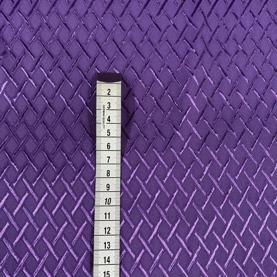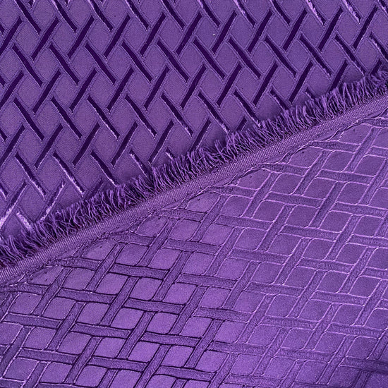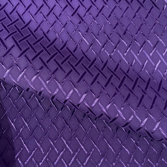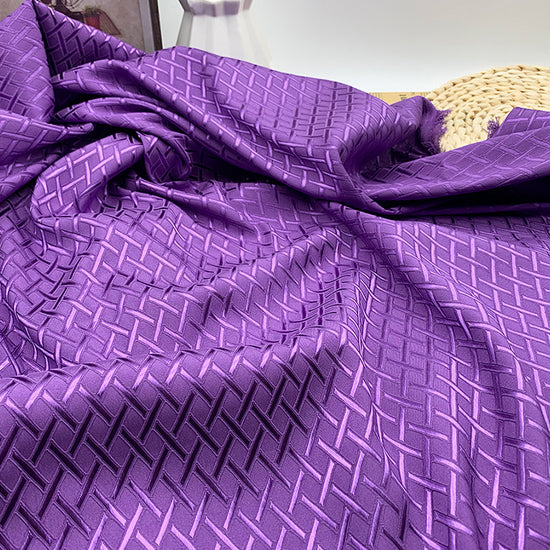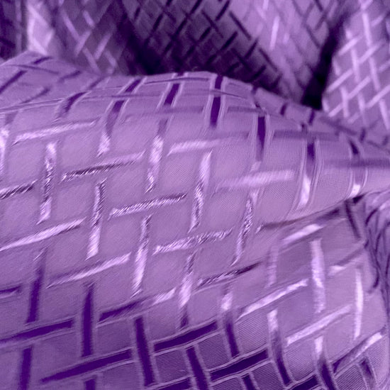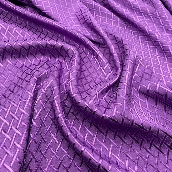 A light to medium weight, opaque, damask Jacquard with diamond hatch motif, great drape, some stretch in the weft direction and a smooth, silky handle and appearance.