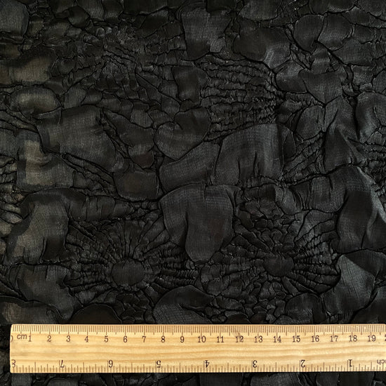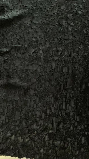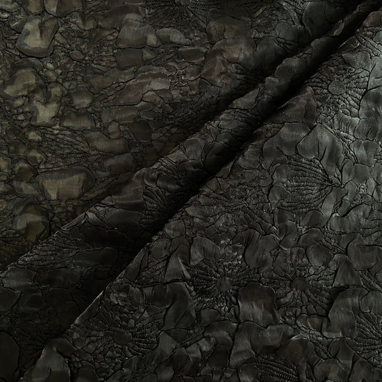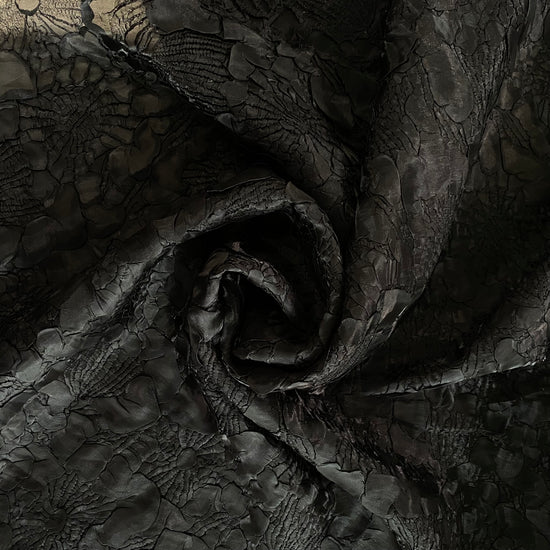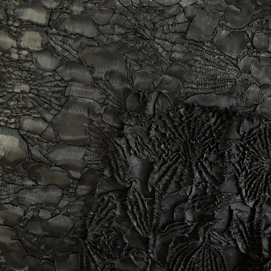 Pebble Flora Shibori Plisse - Shimmered Plain Weave - Black