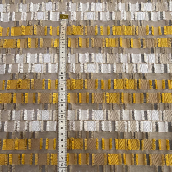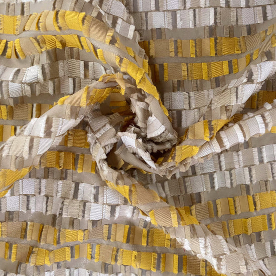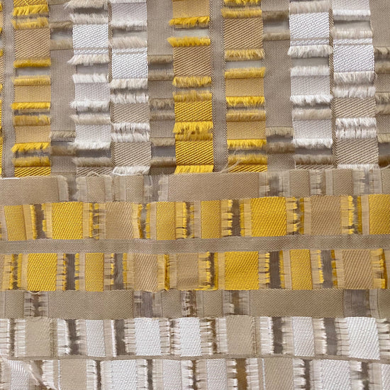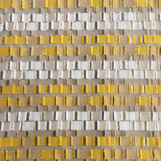 Rectangular Checkerboard Fringe Devore Organza - Yellow