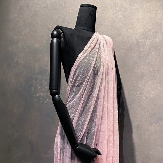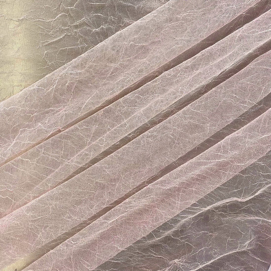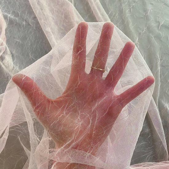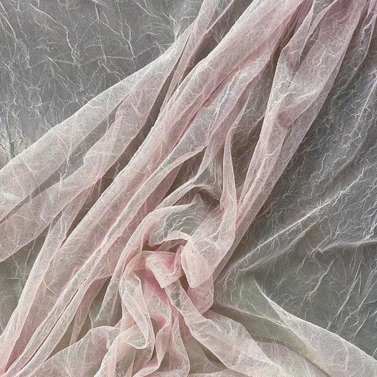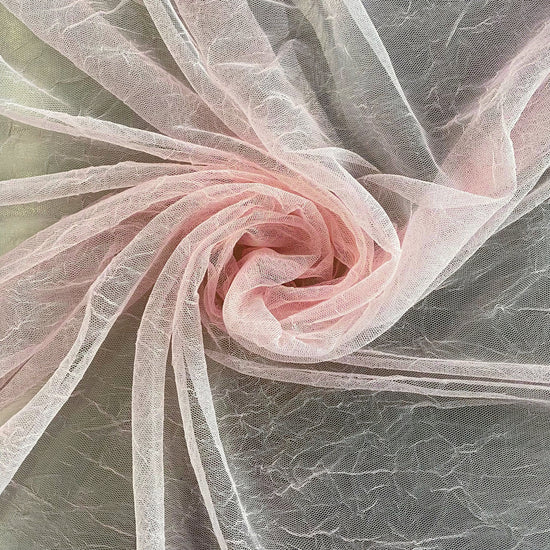 Polyester warp-knit mesh in Pink. This lightweight fabric has a loose warp-knit mesh, with a fine puckered finish and a cool handle. It has a fluid drape, sheer coverage, and high dimensional stretch.